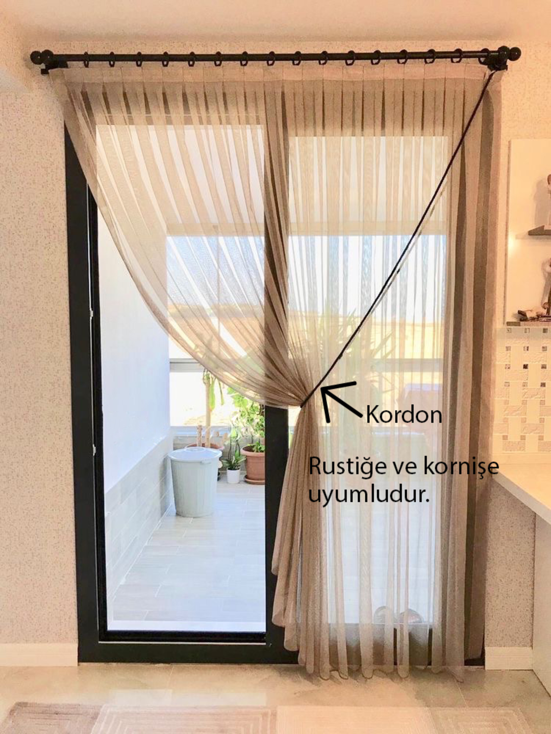 • Genişliği korniş genişliğiniz kadar ya da pencerenin sağından ve solundan en az 25'er cm taşarak ölçün. Taşma payı yoksa bu sorun olmayacaktır.