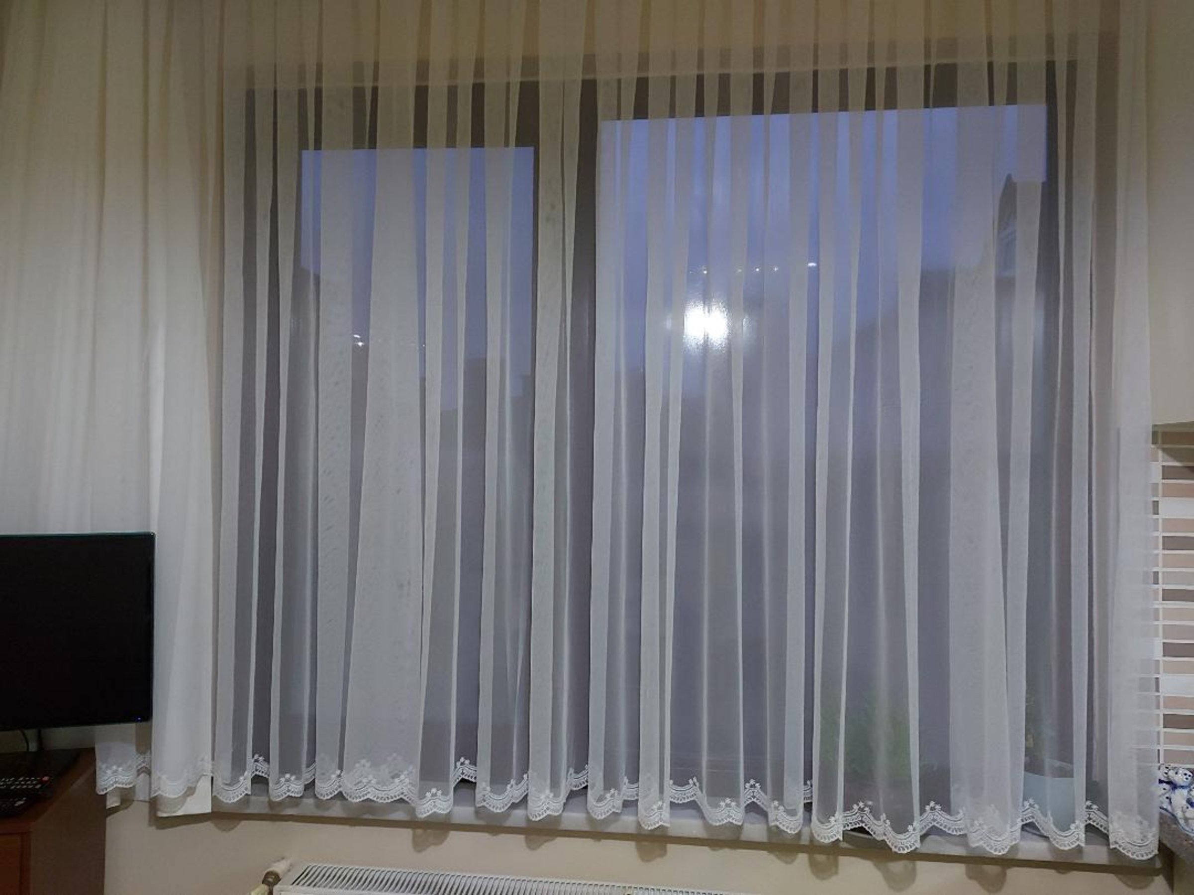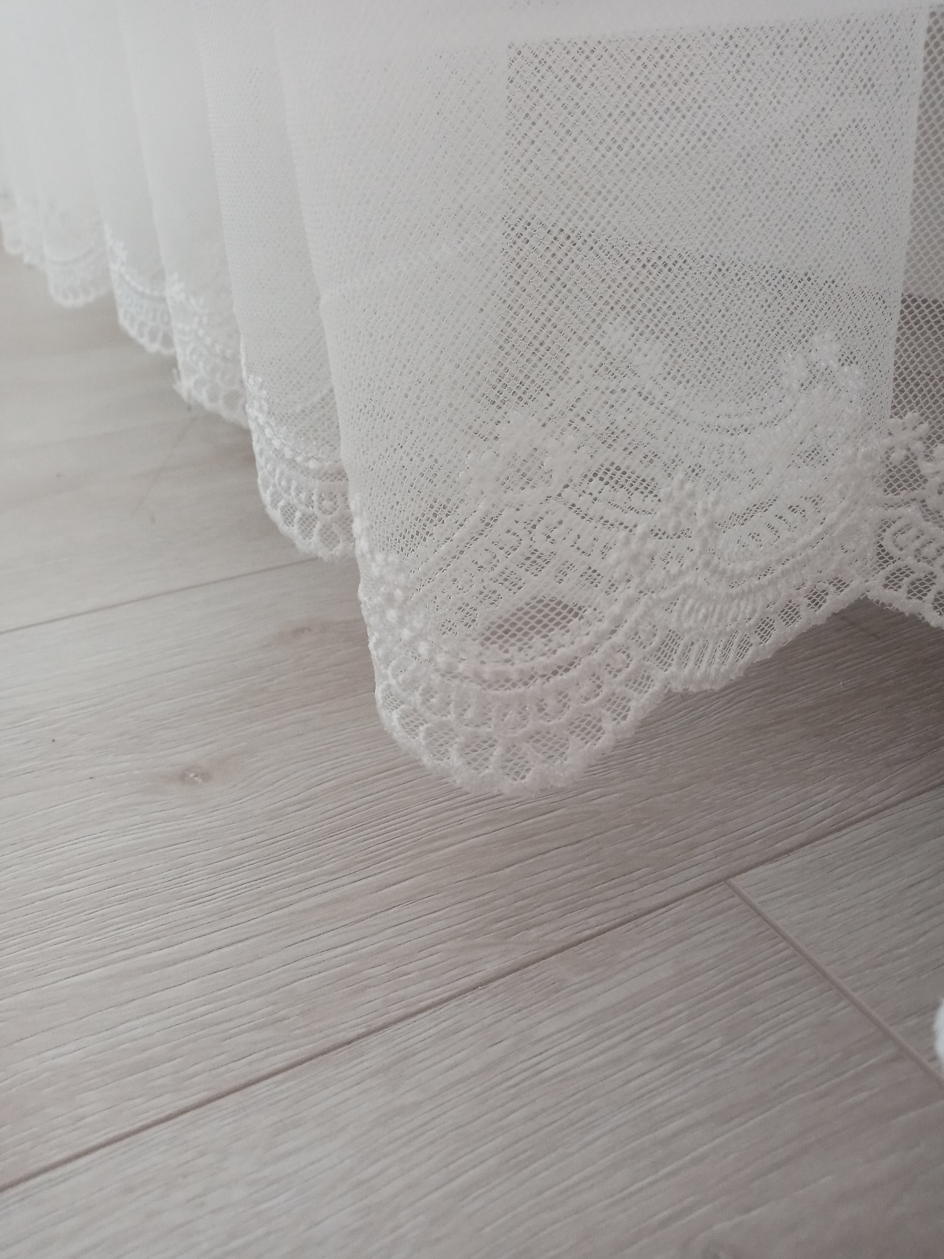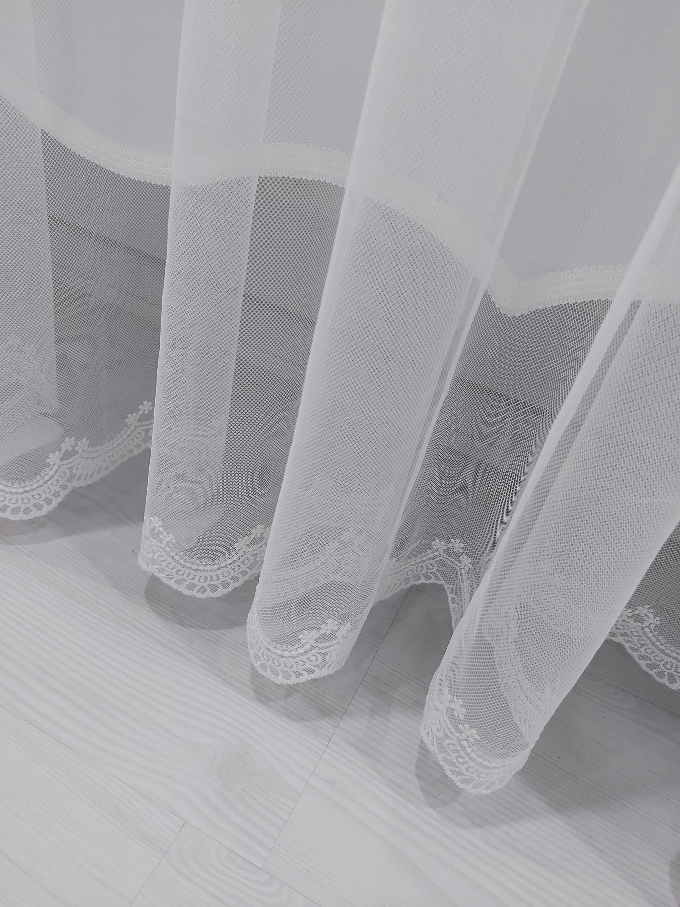 • İncelediğiniz bu ürün, özellikle Gelinlik yapımında da kullanılan fransız danteli petek dantel dokuma tül perde tabir edilen düz tüldür, Etek ucunda nakış makinaları ile yapılan zarif nakış işlemesi vardır,, çok dökümlü ve yıkamaya elverişlidir, yıkama sonrasında ütü istemez.