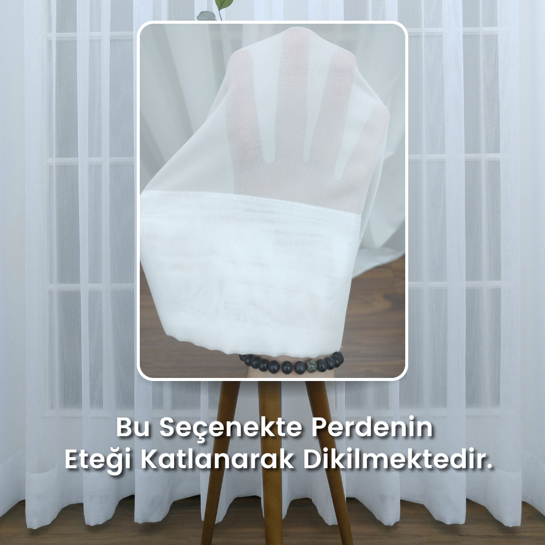 Bu seçenekte tül perdenin eteği çift kat katlanarak dikilmektedir, daha zengin bir duruş için önerilmektedir.